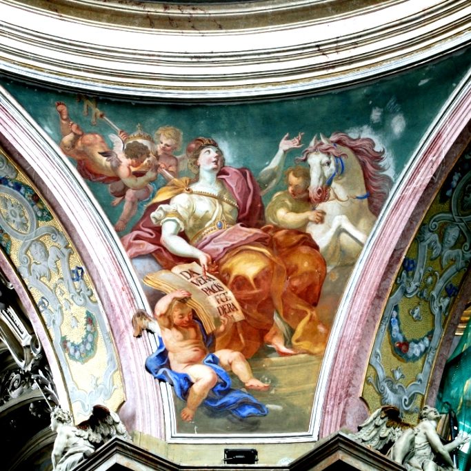 Záchrana nástěnné malby se týkala oblastí v hlavní chrámové lodi, presbytáře, kopule a osmi kaplí. Odborníci se zde potýkali s narušením malby v podobě mastných depozitů a nečistot, krakelážemi menšího až středního rozsahu, odpadáváním omítky. Narušení a vrstva nečistot zkreslovaly barevný kolorit a strukturu fresek. Při obnově jednotlivých částí výmalby bylo nutno reagovat dle rozličného obsahu barevných ploch odlišným řešením a zároveň docílit vhodné harmonizace celku.