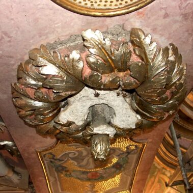 Štuky a sochařské prvky v hlavní lodi, kopuli a presbytáři se nacházely v poměrně zachovalém stavu. Jednalo se zde o drobné lokální poškození, praskliny způsobené pohybem zdiva během ostřelování Rudou armádou v roce 1945 či vlivem zatékání. Podstatně horší situace byla zaznamenána v kaplích, obzvláště v kapli sv. Anděla Strážného. Vlivem zatékání a přetrvávající vlhkosti zde byly praskliny rozsáhlejší. Některé části štuků byly ulámané a rozrušené.