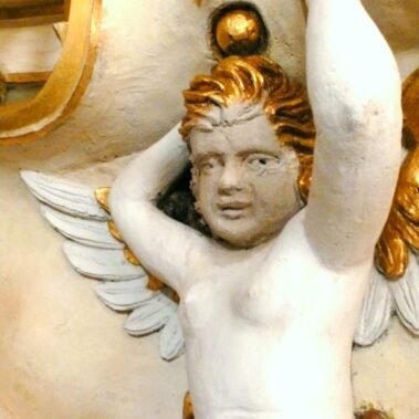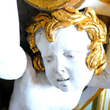 Také sochy byly lokálně poškozené. Některé části plastik byly ulámané, vlivem vlhkosti v kaplích a hlavní lodi došlo ke zrezivění železných armatur, kterými byly jednotlivé sochy přidělány (tj. jejich hlava a končetiny). Vlivem rzi docházelo k roztrhání soch. Plastiky tak musely být postupně rozebrány. Poté následovala plastická rekonstrukce, ošetření odrezovačem a slepení do původní podoby. Některé pozdější předělávky soch byly sejmuty, aby se zachoval originální vzhled. Sochy šesti andělů-cherubínů., šesti putti na obláčku a holubice v lucerně kopule byly taktéž restaurovány podle nejstarší podoby. Byla zde sejmuta nepůvodní stříbrná barva a nahrazena starším způsobem zdobení – pravým zlatem.