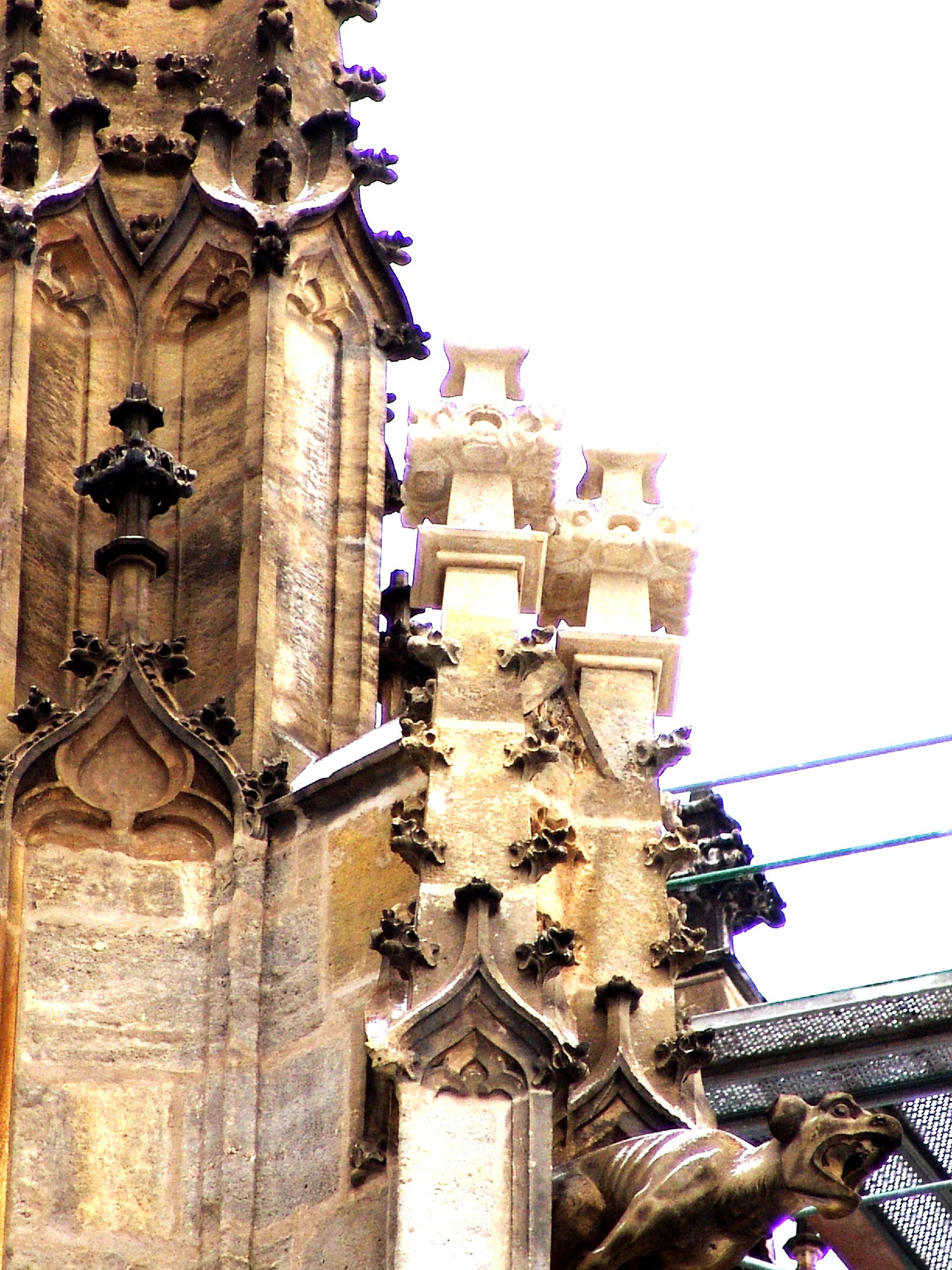 Dekorativní prvky opěrného systému (zvláště křížové kytky) byly často ve velmi špatném až havarijním stavu, proto musely být nahrazeny technologickými kopiemi z mušlového vápence, který byl dovezen z Rakouska. Koroze a kritický stav kamene byly způsobeny nevhodnou volbou hořického pískovce.