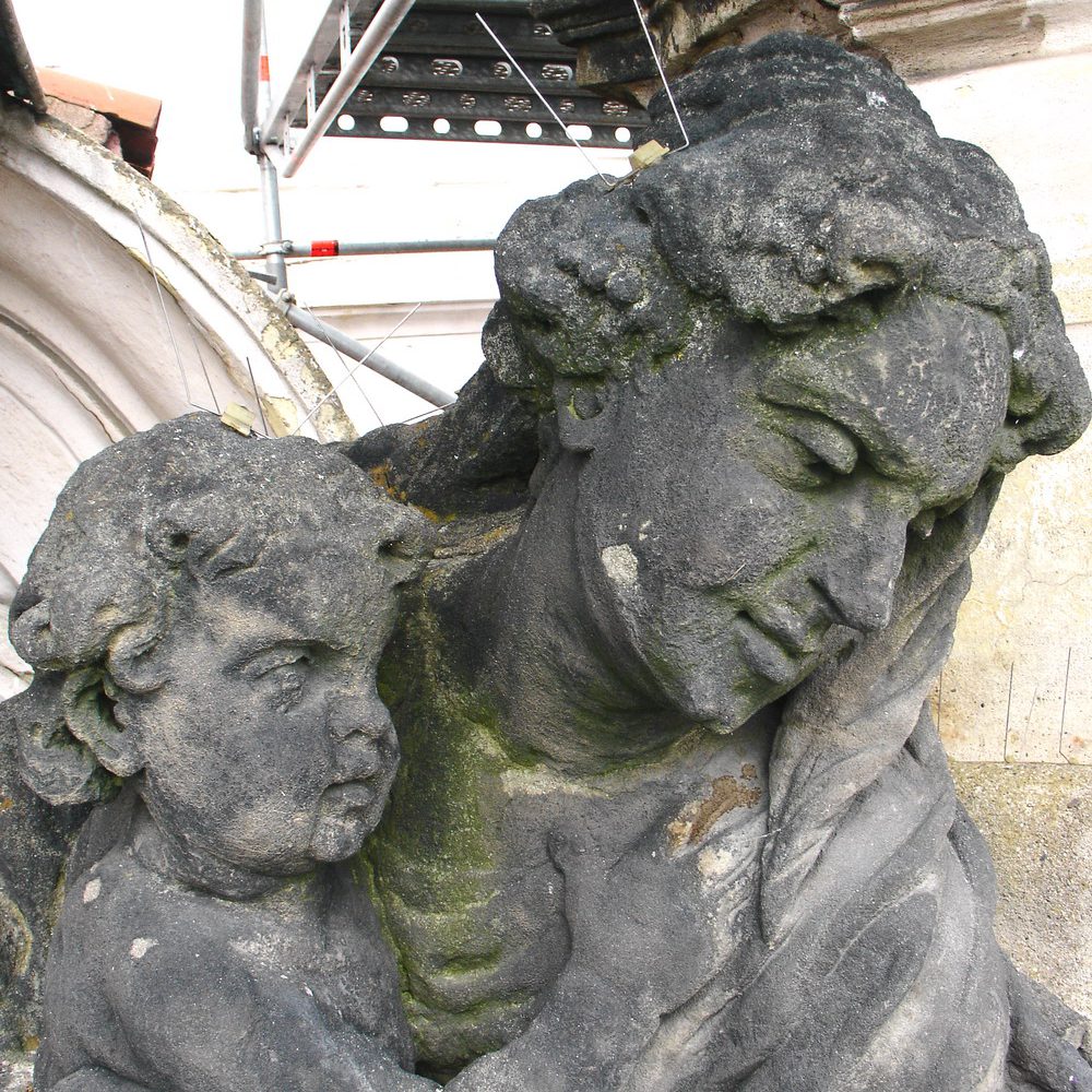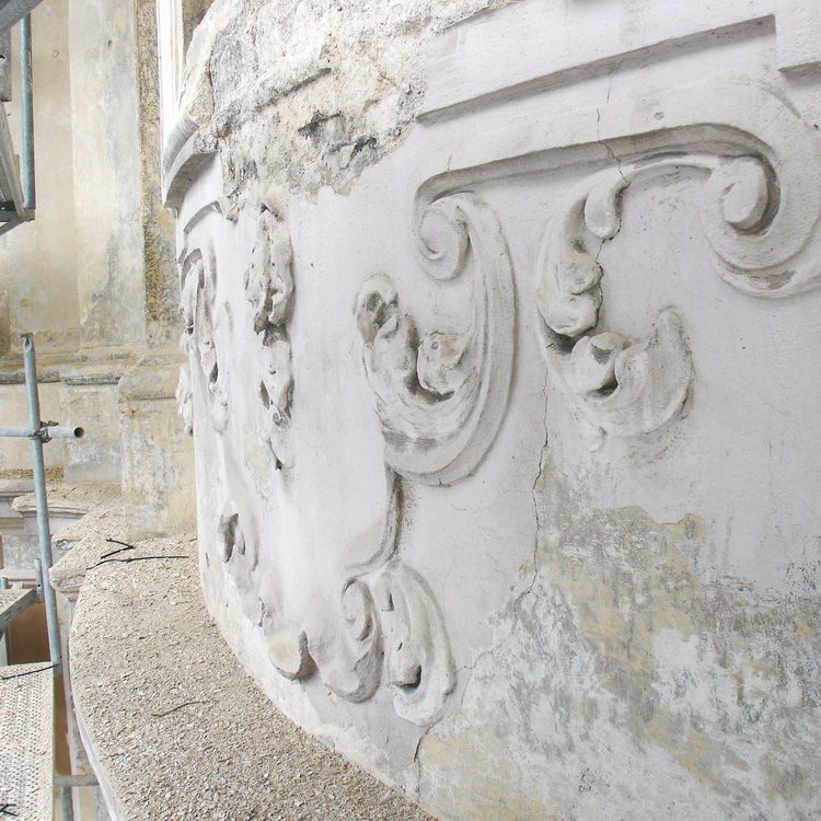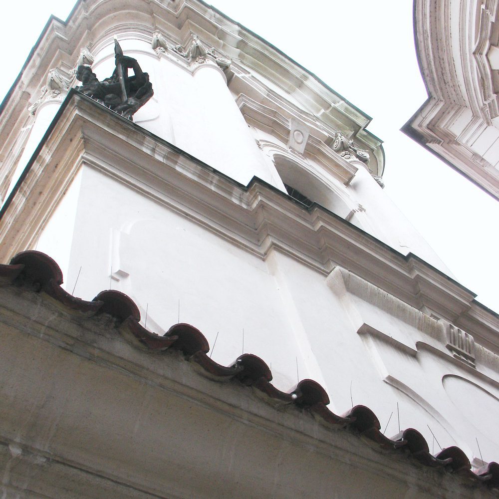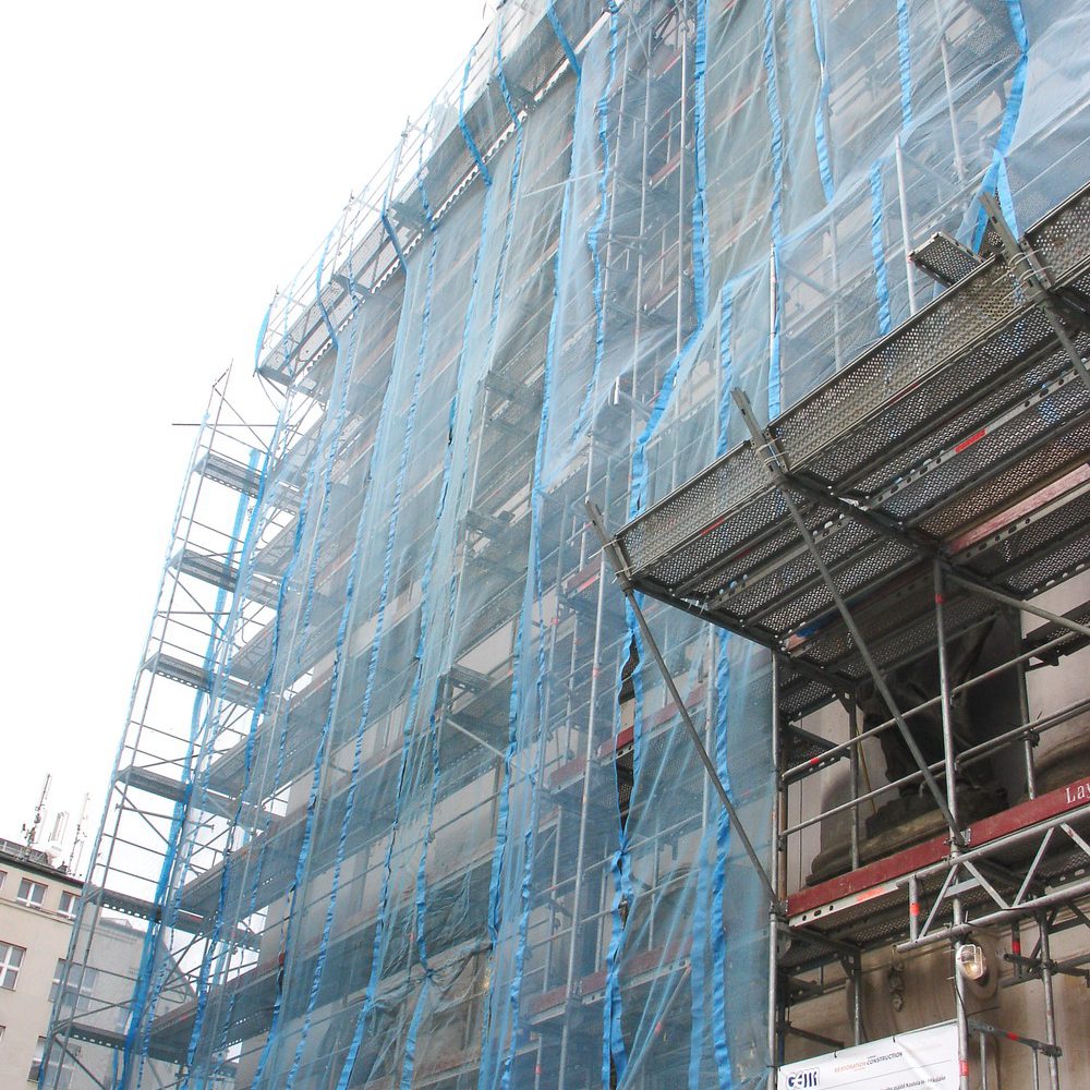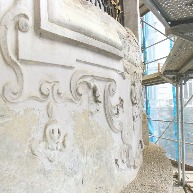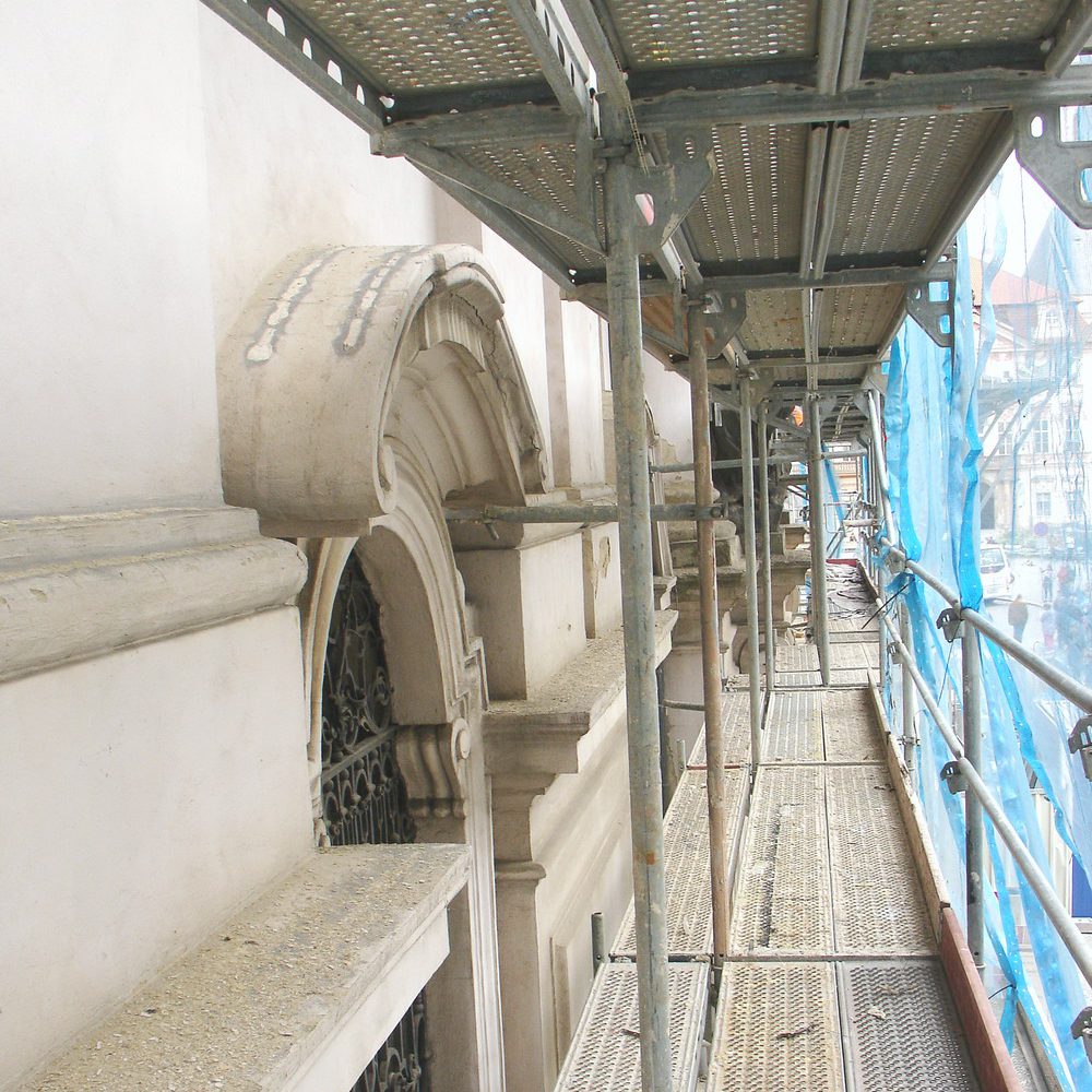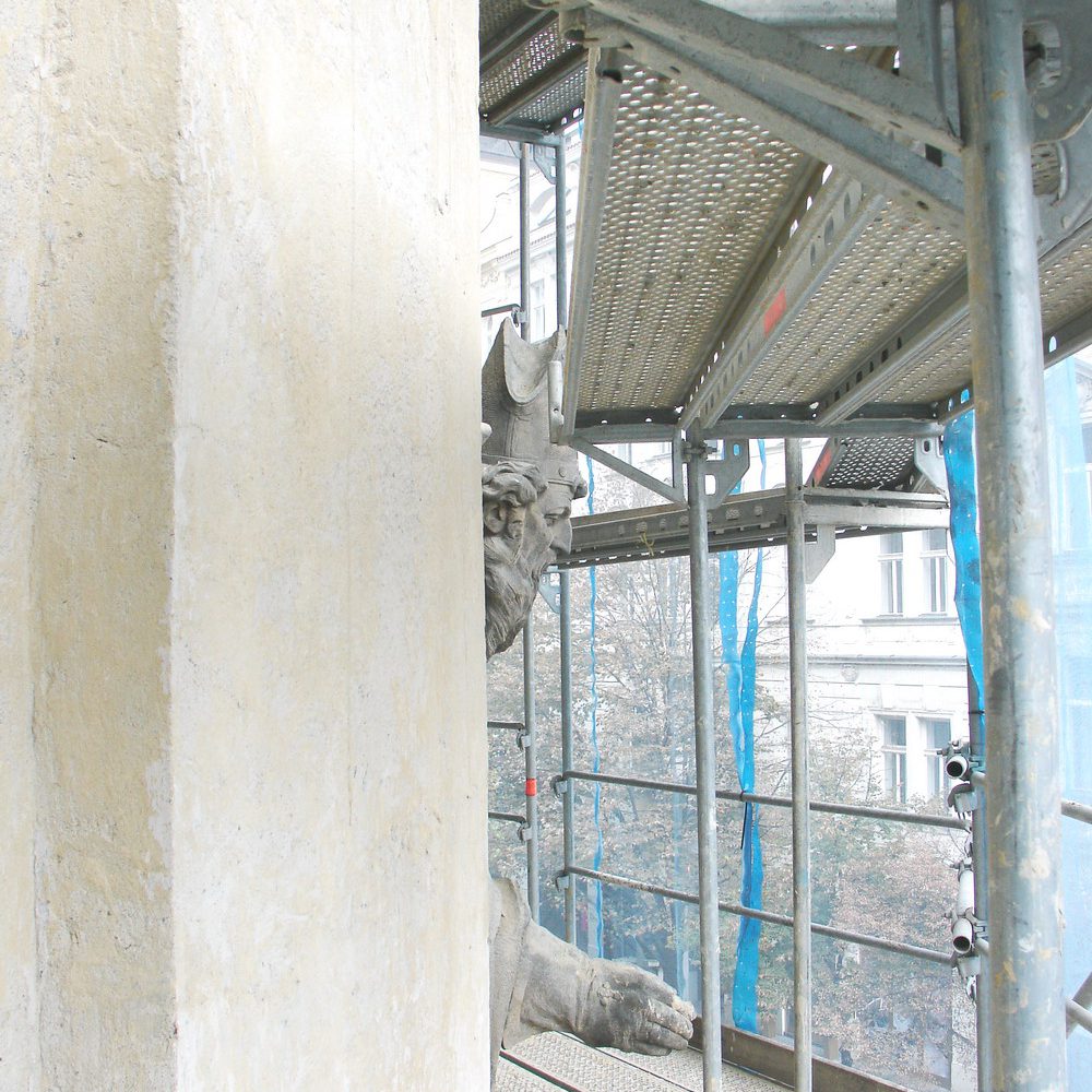 Since July of 2014, work has been progressing on the first part of the repairs, including renewal of the historical outside walls. At the present time, the façade is being cleaned to remove later coatings, repaired and prepared for application of new stucco layers in colours according to the original design. This work will also encompass cleaning and restoring the Baroque stucco decoration created by Bartolomeo Spinetti. This will be followed by restoration of the Baroque sculptural decoration from the workshop of Matthius Bernard Braun and Mathias Wenzel Jäckel and also of the Neobaroque sculpture created by Bohuslav Šimanský.