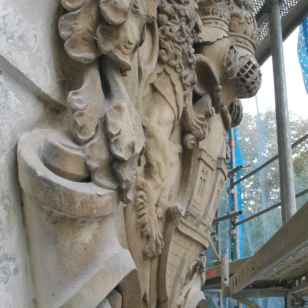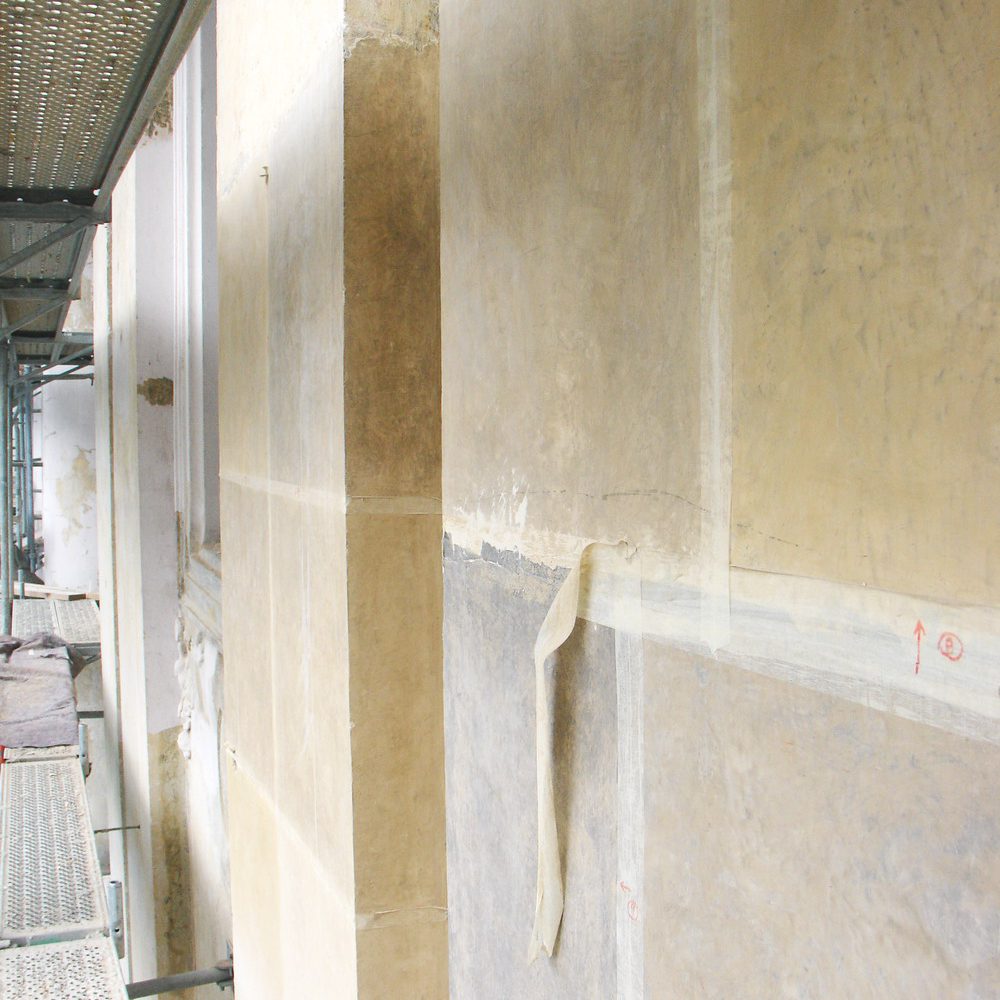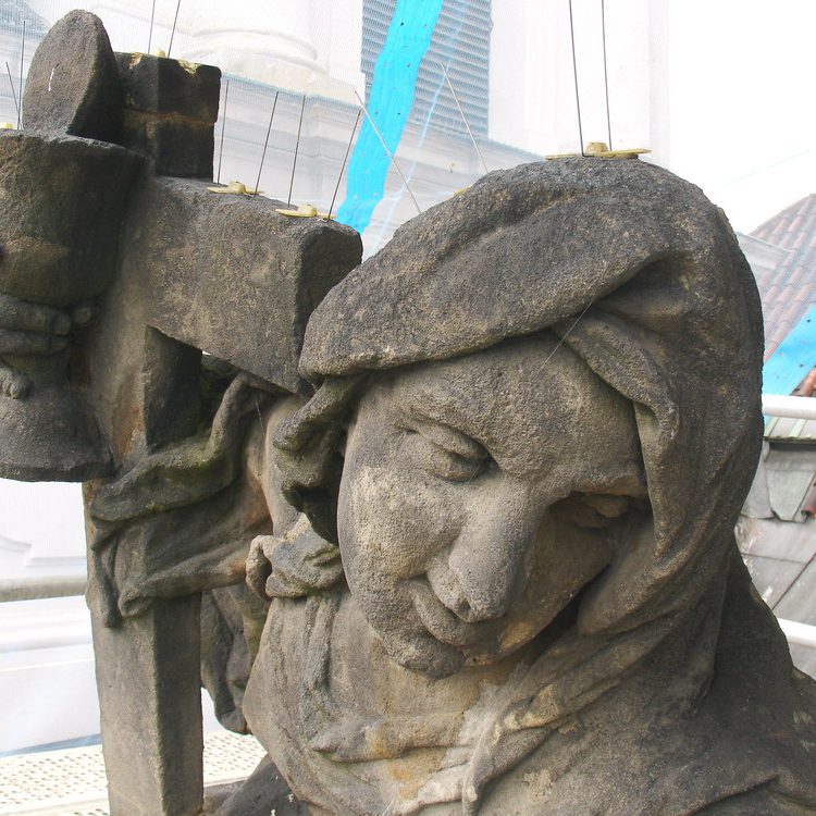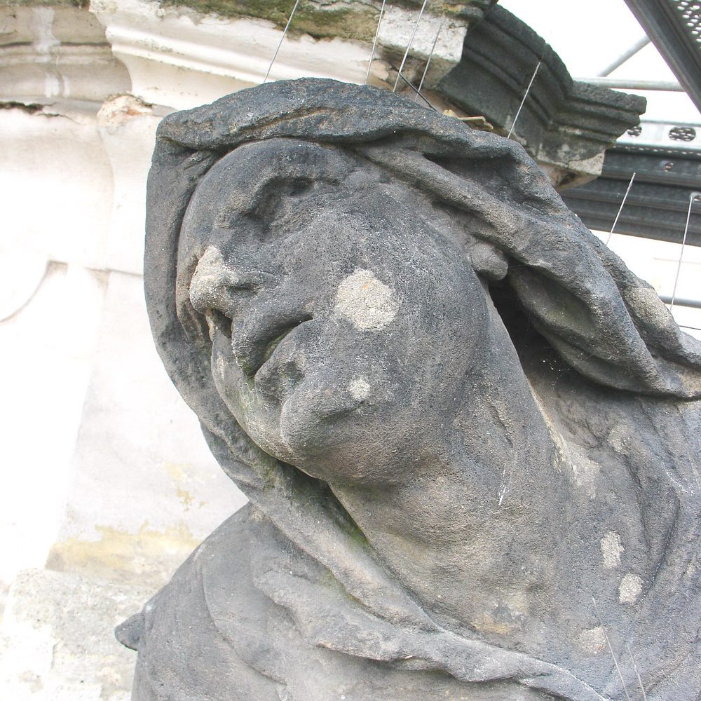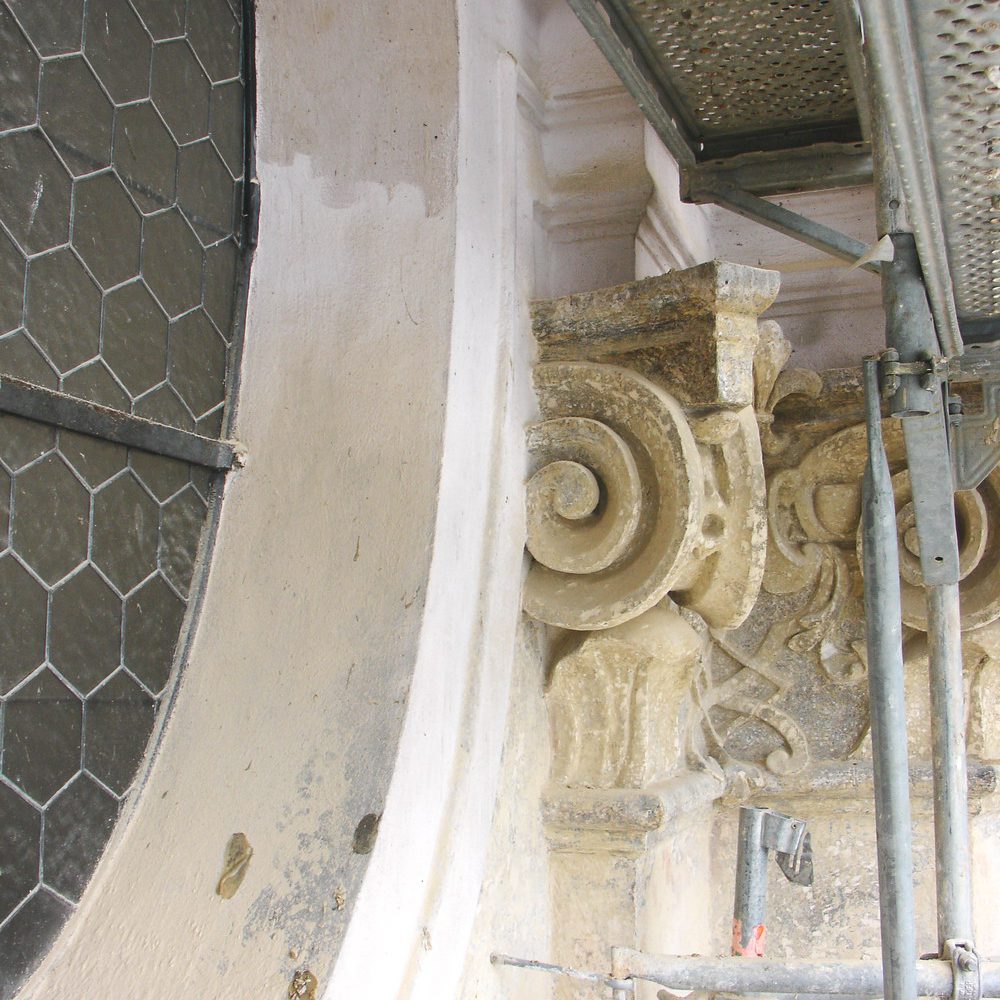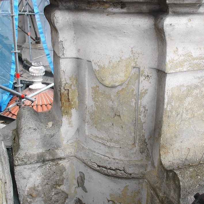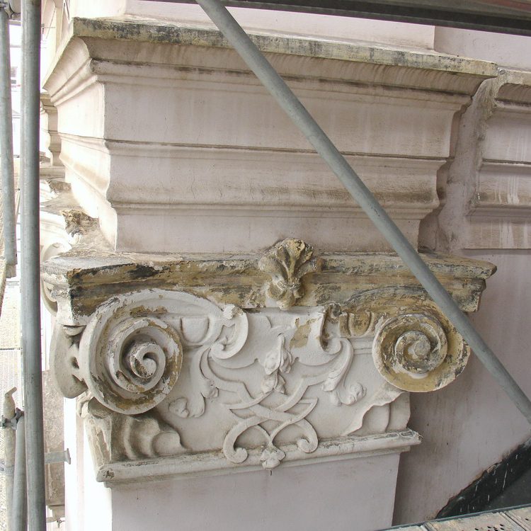 Since July of 2014, work has been progressing on the first part of the repairs, including renewal of the historical outside walls. At the present time, the façade is being cleaned to remove later coatings, repaired and prepared for application of new stucco layers in colours according to the original design. This work will also encompass cleaning and restoring the Baroque stucco decoration created by Bartolomeo Spinetti. This will be followed by restoration of the Baroque sculptural decoration from the workshop of Matthius Bernard Braun and Mathias Wenzel Jäckel and also of the Neobaroque sculpture created by Bohuslav Šimanský.