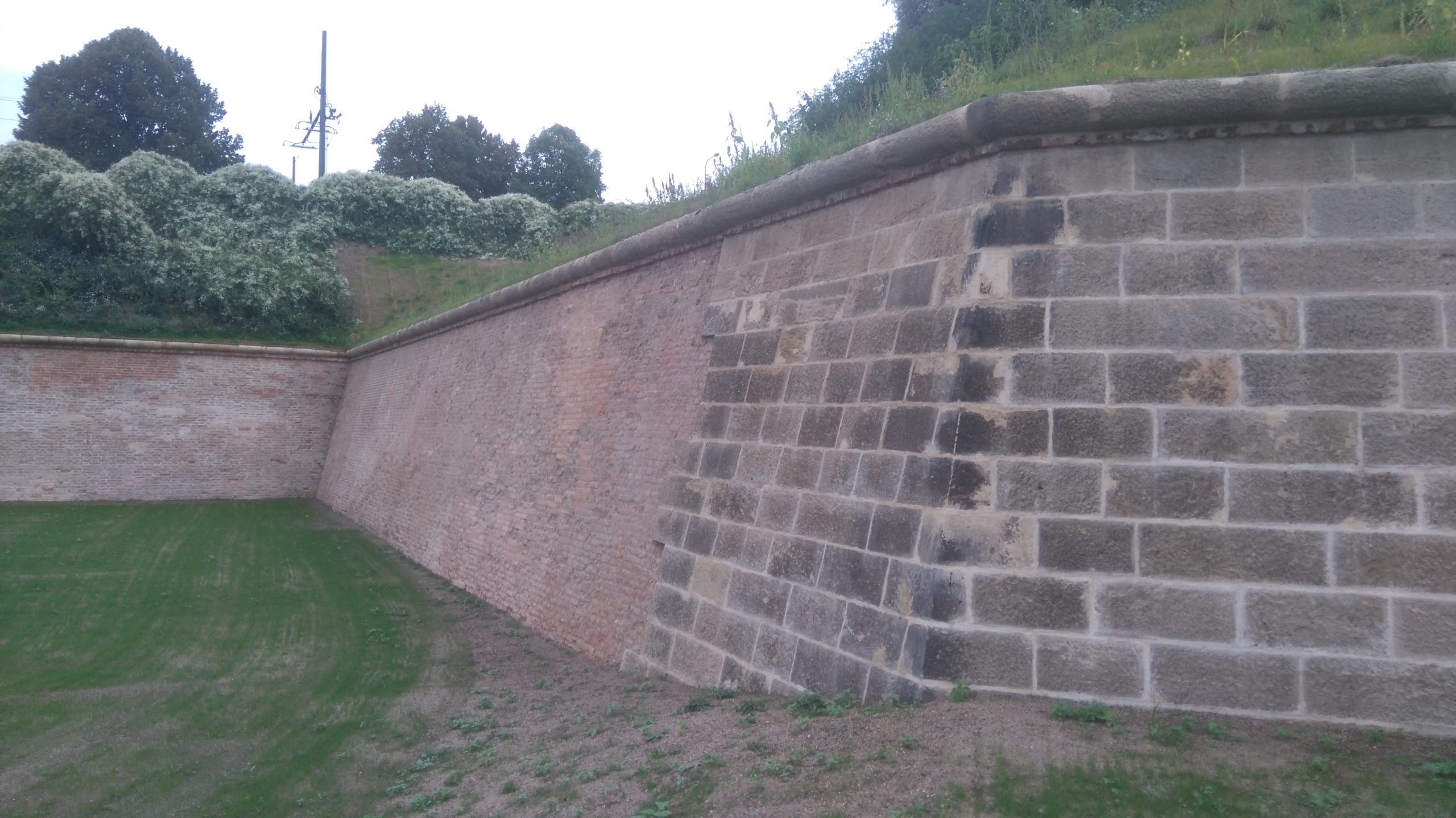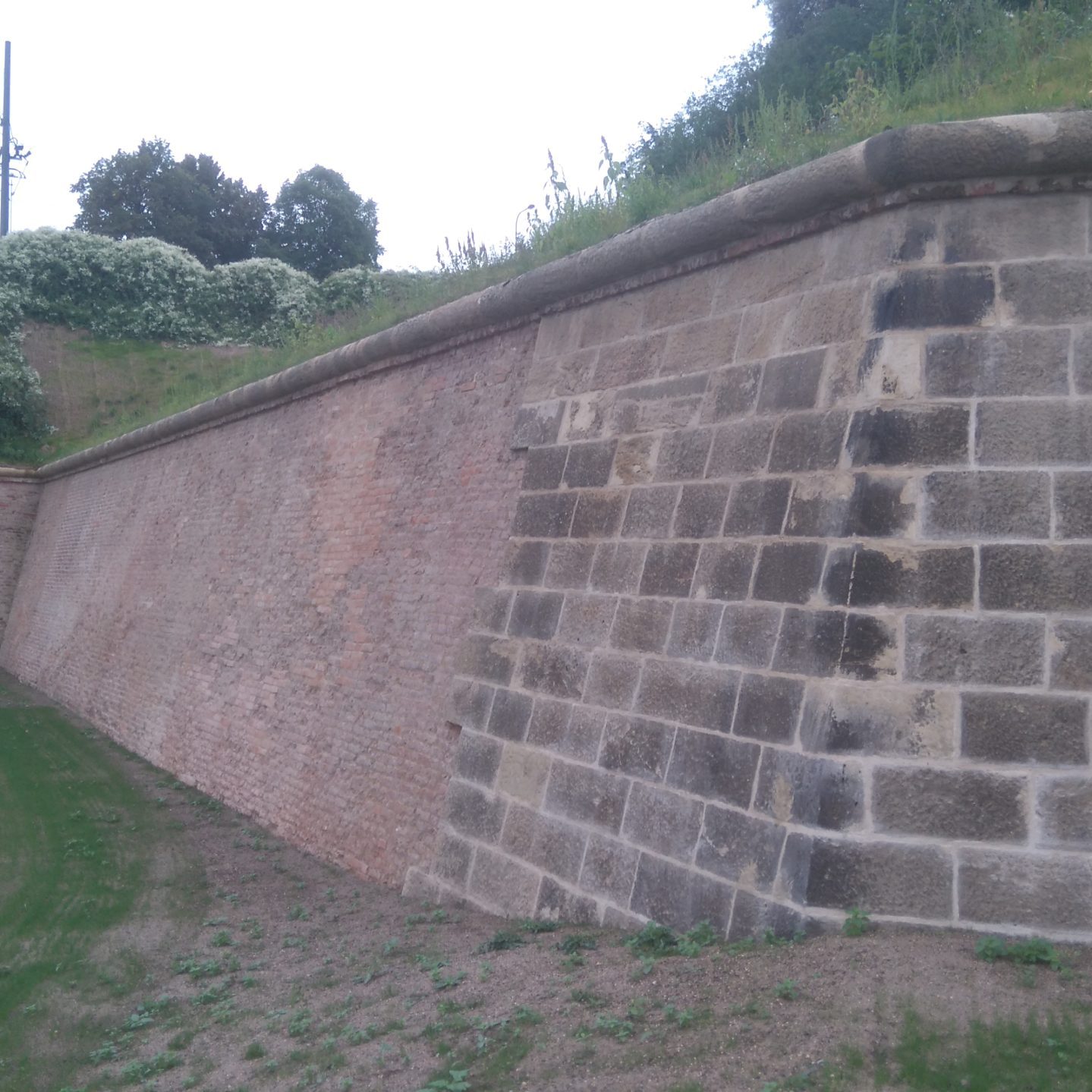 The works opened with a careful removal of bushes and self-seeded trees. Brick and stone walls of the bastions were breached in many places by the root system of now fully-grown trees. The securing of the Baroque bastions were included extensive ground works, excavations, removal of old anchors, boreholes and injections, insulation against earth dampness, gradual disassembly of degraded parts and adding substitute stones or bricks into the walls. Final works were involved mounting stone toruses to the top of the walls, applying lime plasters and treatment against air and climatic humidity.