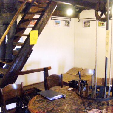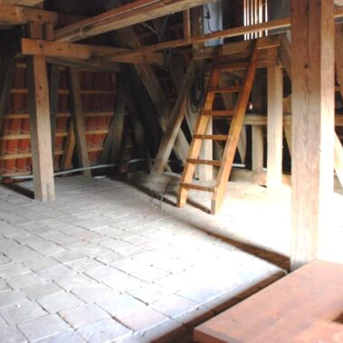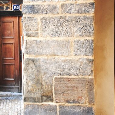 During the restoration and building work several new stone elements were discovered, which broadened the scope of knowledge regarding the history of the building. For this reason new historical and architectural research was carried out as a follow up to the previous survey of Mělník’s town fortifications, which took place in 1980. The most important new discovery was the medieval staircase at the northern side of the tower, which was made newly accessible. The experts also inserted probes into the masonry at the forth level of the tower and located a stone niche and a hollow space. It was originally anticipated that this might have been the site of another staircase now hidden in the strong walls but the probes disproved this presumption.