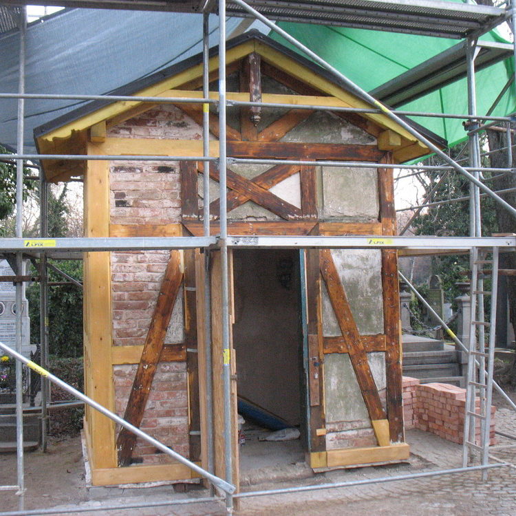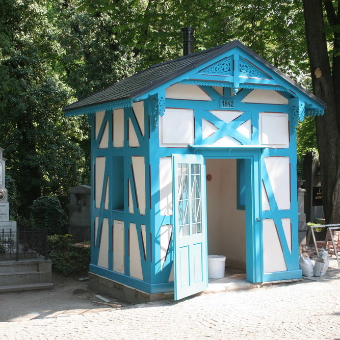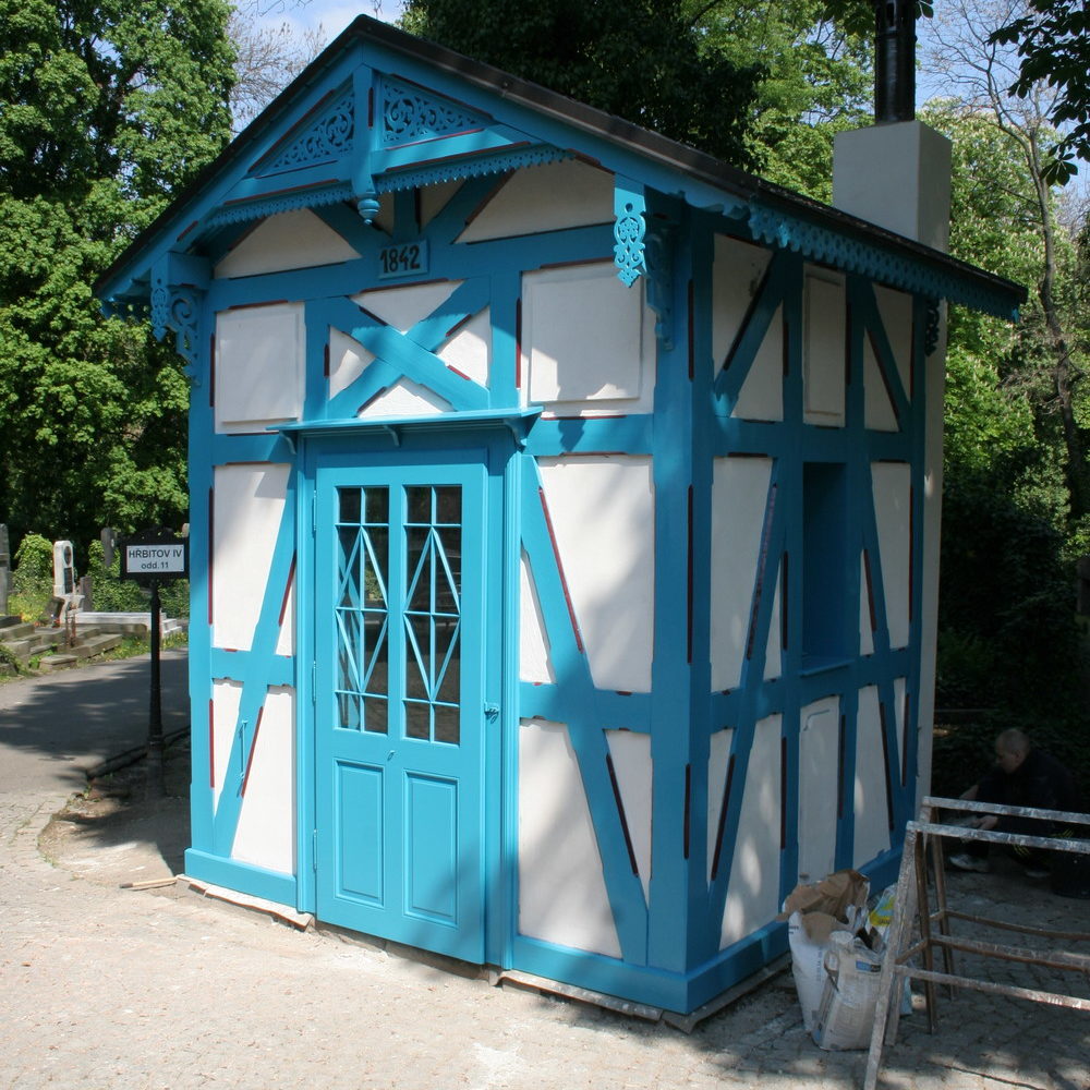 Hrázděný objekt bývalé vrátnice, Olšanské hřbitovy, Praha 2