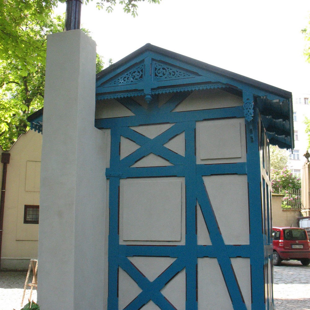 Dle stávajících zbytků ostění byly vyrobeny a osazeny historické repliky oken i dveří. Následovalo doplnění omítkových ploch. Finální barevnost byla provedena ve shodě s výsledky restaurátorského průzkumu původní barevnosti. Fasáda domku tak získala modro bílý odstín.