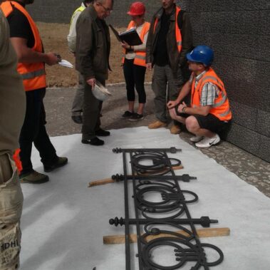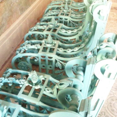 První fází prací byla demontáž stávajících nehistorických ocelových mříží. Následovalo restaurování historických kovových prvků. Jednalo se o původní umělecky zpracovaná zábradlí, dekorativní mříže na oknech a o kovové konzole.
