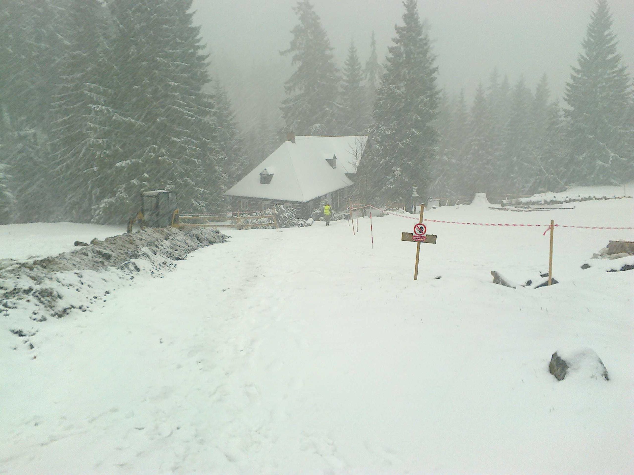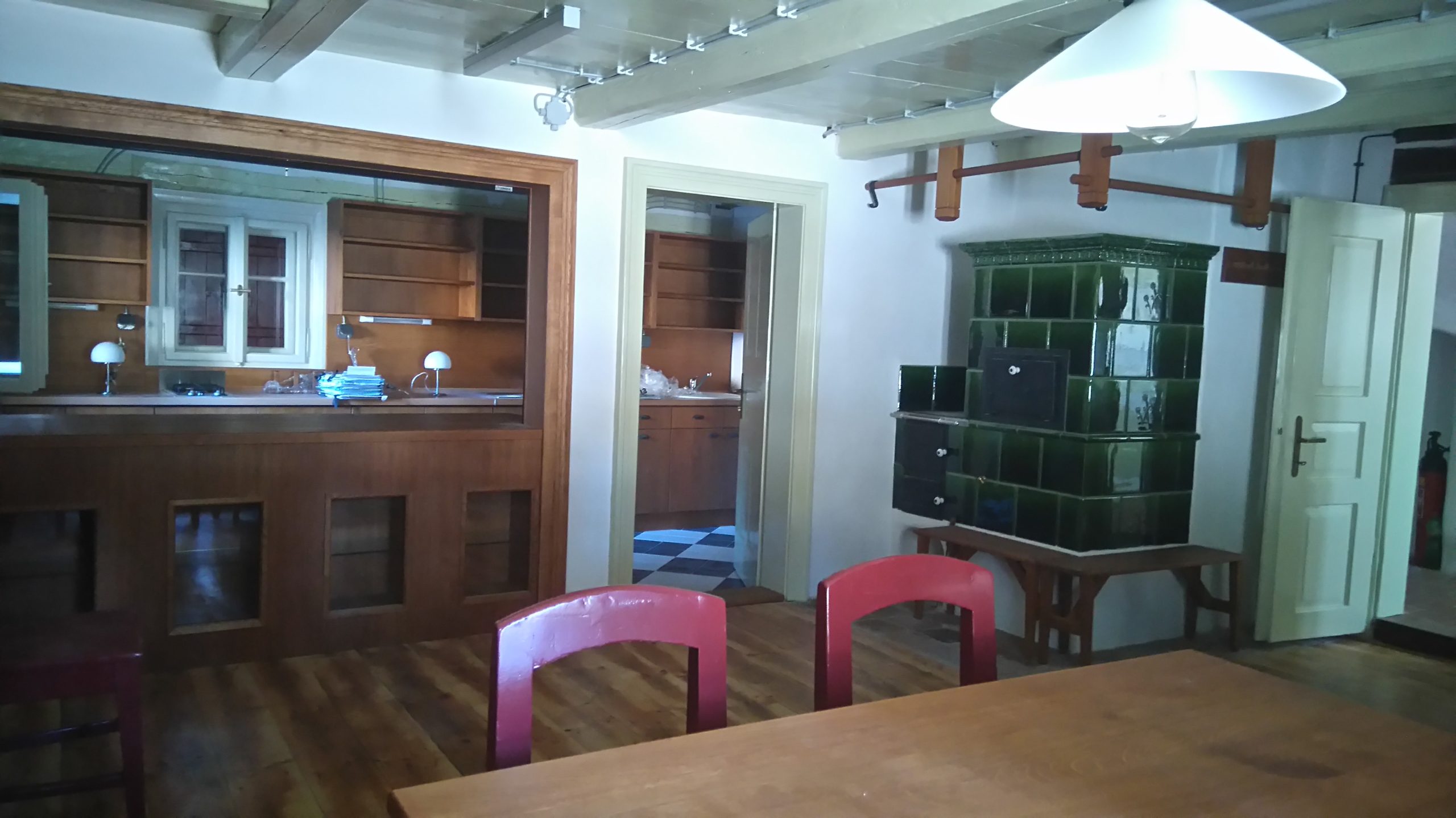 Do dnešních dnů se zachovalo pouze toto jediné roubené stavení, které kdysi sloužilo k ubytování sklářů, později jako hospoda a rekreační zařízení, tzv. Liščí bouda. Cílem rekonstrukce byla obnova časem ztracených památkových hodnot a zlepšení provozního zázemí pro návštěvníky a průvodce. Došlo zde k sanaci veškerých stavebních konstrukcí od kamenných sklepení, přes roubenou část až po střechu, která byla opětovně pokryta tradičním dřevěným šindelem. Nově zajištěno bylo hygienické zázemí (tedy elektřina, voda a odvod odpadů) a možnost základního občerstvení návštěvníků, kteří dříve museli vyšlapat nejméně 3 – 5 kilometrů „po svých” nebo „kolmo”. Zastřešená terasa hostům nově umožní schovat se před nepřízní počasí, nebo se potěšit pohledem na okolní zeleň.