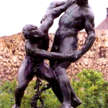 Jedná se o napodobeniny bronzových soch od Adriana de Vriese, které během třicetileté války uloupili Švédové. Identické kopie nechal v letech 1913 až 1918 odlít Arnošt Karel z Valdštejna.