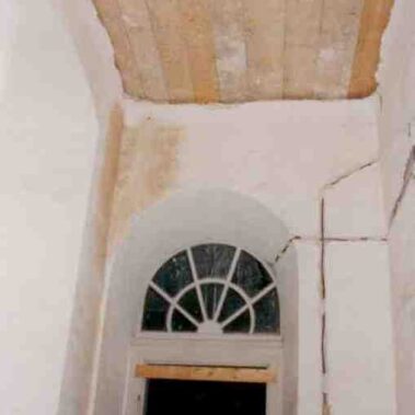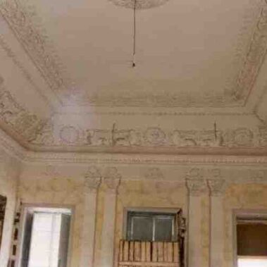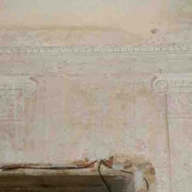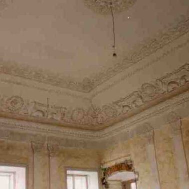 Sádrový krb byl taktéž nejprve očištěn a posléze napuštěn šelakem, aby se zpevnil povrch. Trhliny byly zatmeleny sádrou.